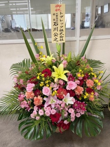 花が大きく綺麗に咲き誇った豪華な胡蝶蘭とカラフルでかわいいお花がたくさん入った華やかなアレンジメントをいただきました