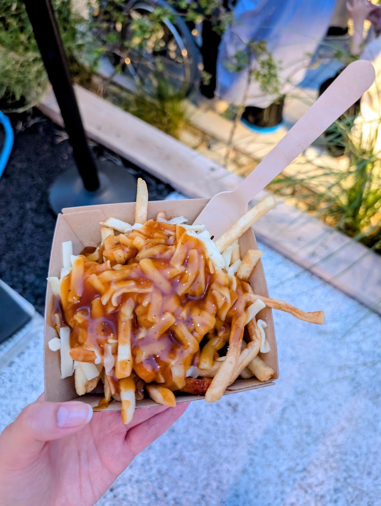そして、1時間並んでカナダのプティーンを食べ、大屋根リングからの夜景を楽しみ、