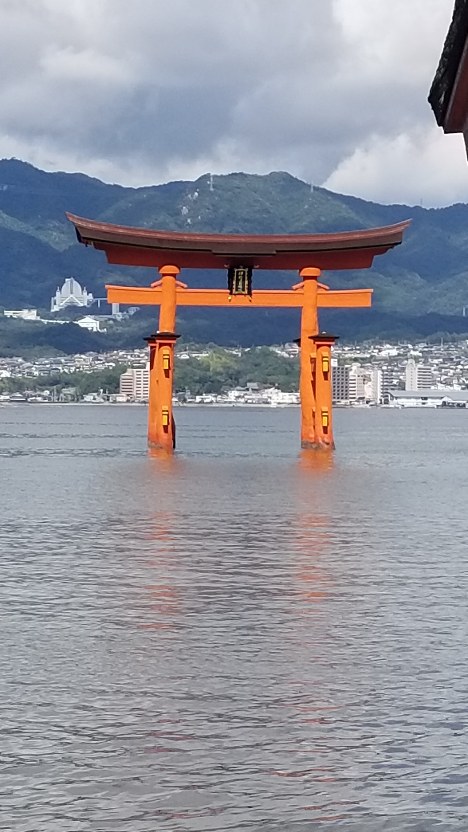 海に浮かぶ鳥居もきれいで、干潮時に近くで見た巨大な鳥居も迫力がありましたbangbang.png