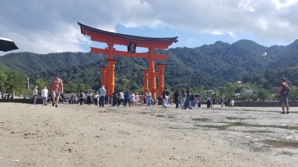 ちょうど大潮の日で午前中に満潮、午後に干潮があり、二つの姿の鳥居を見ることができました。