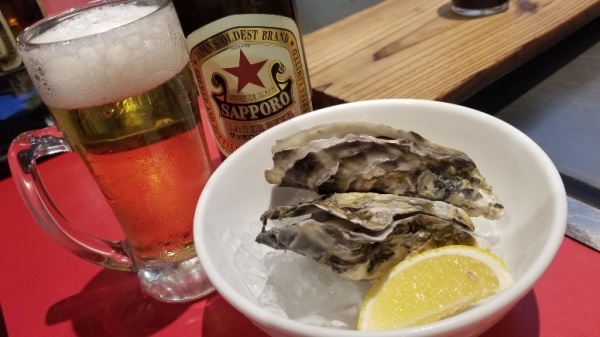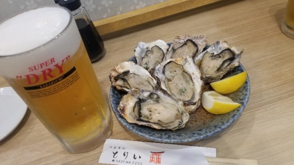 「焼き牡蠣」を冷えたビールで、プリプリのジューシーで間違いなくうまいthumbsup.png