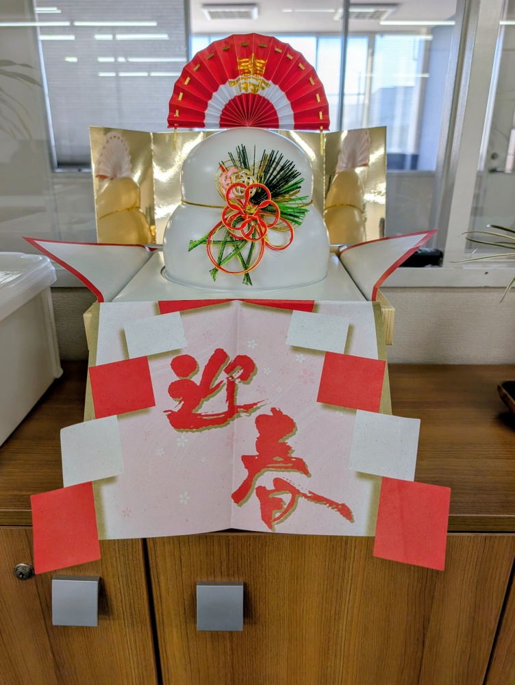 本社では、大掃除を済ませて事務所に鏡餅を飾り、