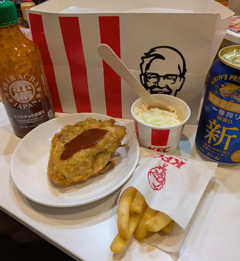 KFCチキンとスリラチャソースのマッチ最高ですよthumbsup.png