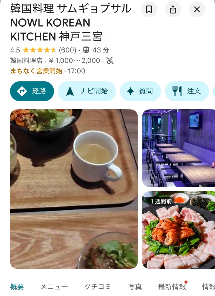 三ノ宮にある**「NOWL KOREAN KITCHEN 神戸三宮」**という韓国料理のお店です。