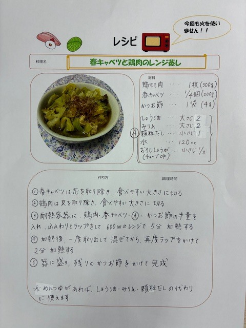 今回は「春キャベツと鶏肉のレンジ蒸し」です